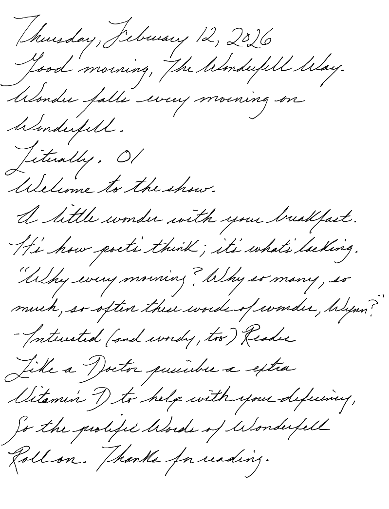 Good morning, The Wonderfell Way.