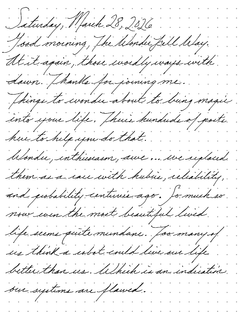 Good morning, The Wonder Fell Way.