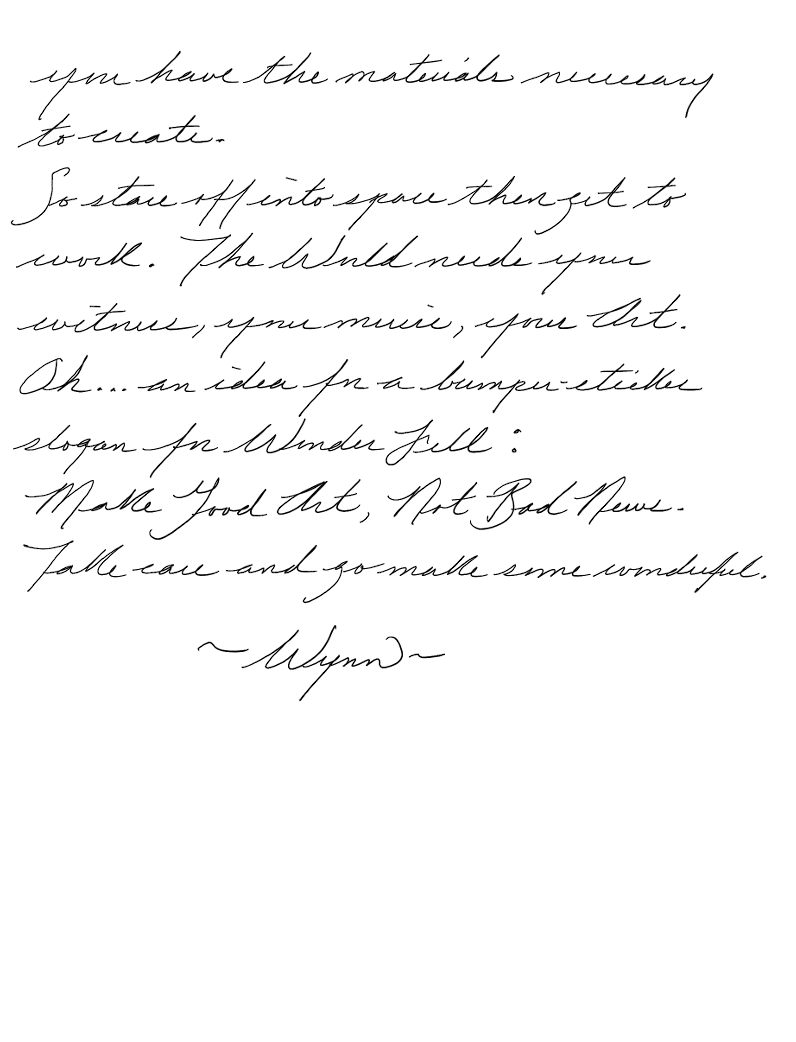So stare off into space then continue to work by making your dreams real. The World needs your witness, your music, your Art.