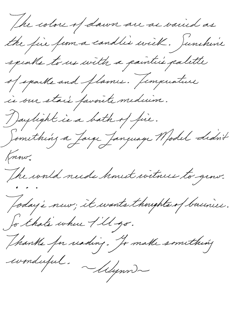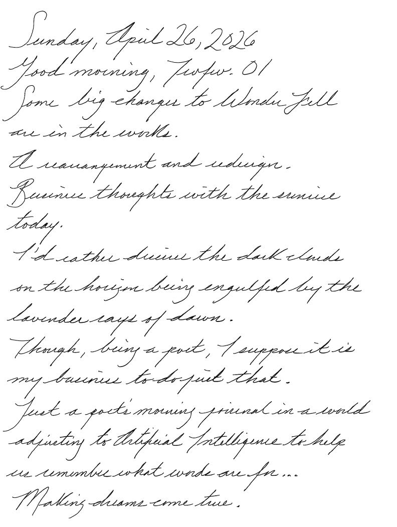 Just a poet's morning journal in a world adjusting to Artificial Intelligence to help us remember what words are for...