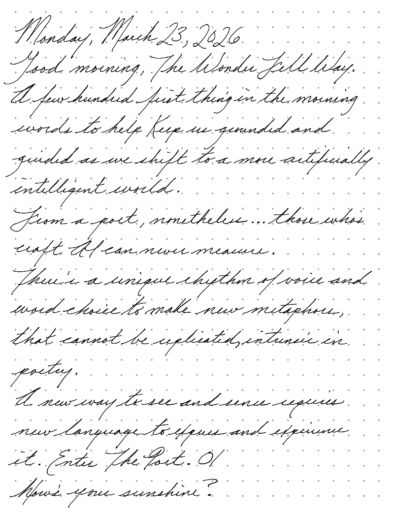 A few hundred first thing in the morning words to help keep us grounded and guided as we shift to a more artificially intelligent world.