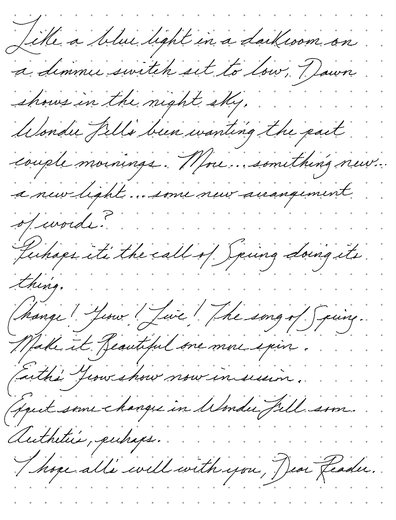 Wonder Fell's been wanting the past couple mornings. More... something new... a new light... some new arrangement of words?