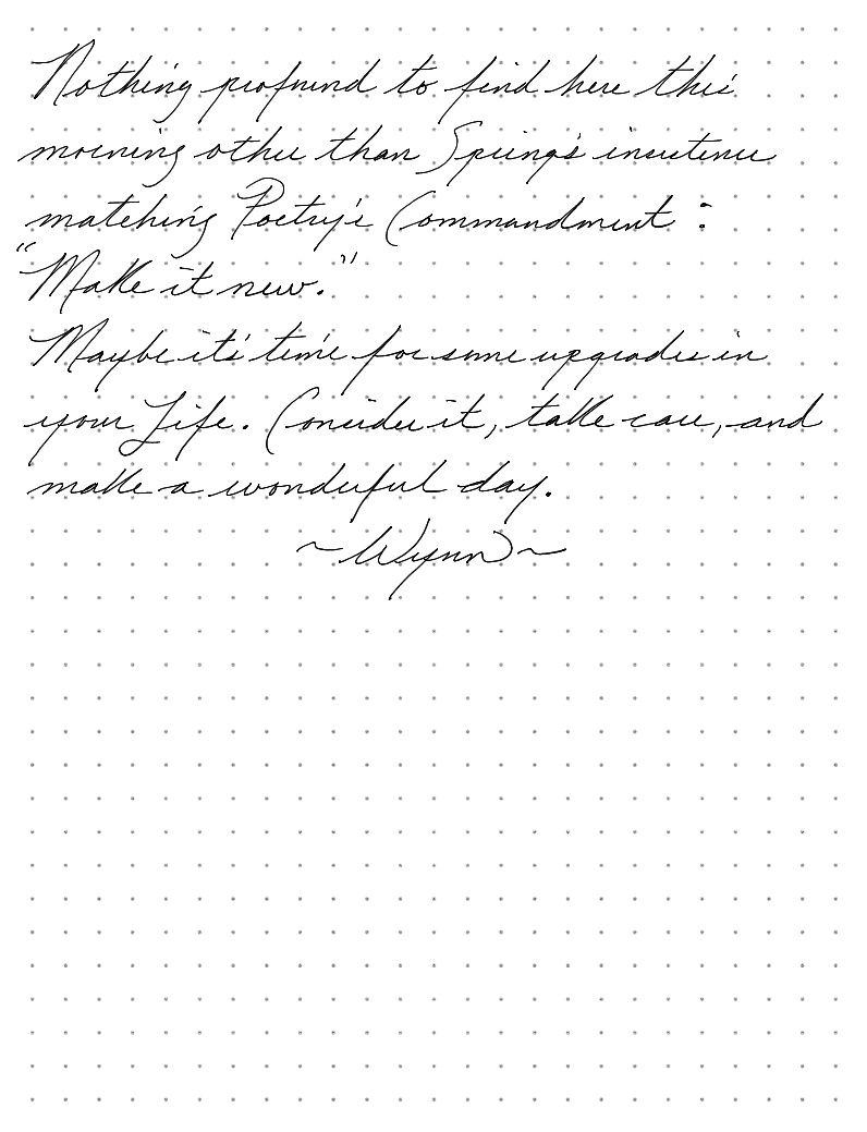 Nothing profound to find here this morning other than Spring's insistence to match Poetry's Commandment: "Make it new."