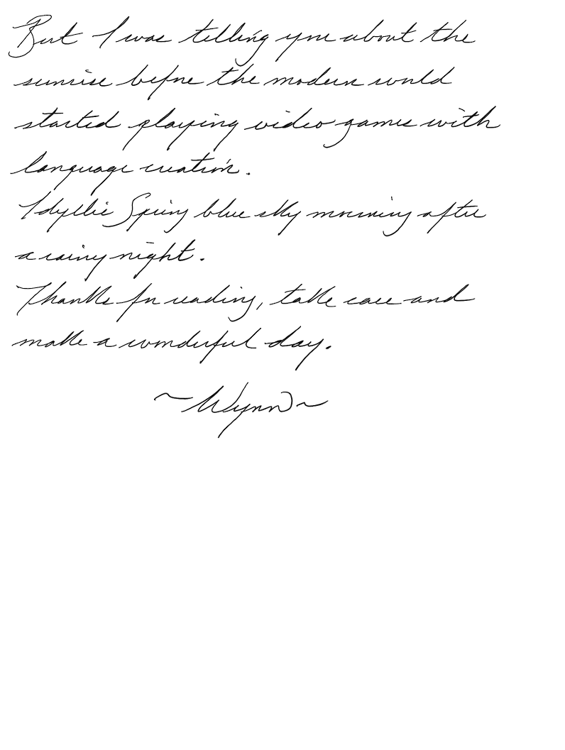 But I was wondering about the sunrise with you before the modern world started playing video games with language creation.