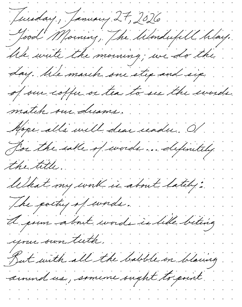 2026.01.27 Keep in mind every time you utter, type, sing, or thumb-slap a word you're furthering or hindering humanity.