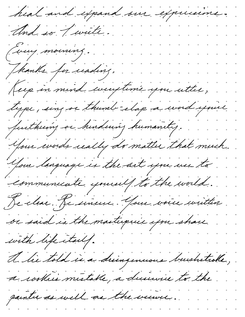Keep in mind every time you utter, type, sing, or thumb-slap a word you're furthering or hindering humanity.