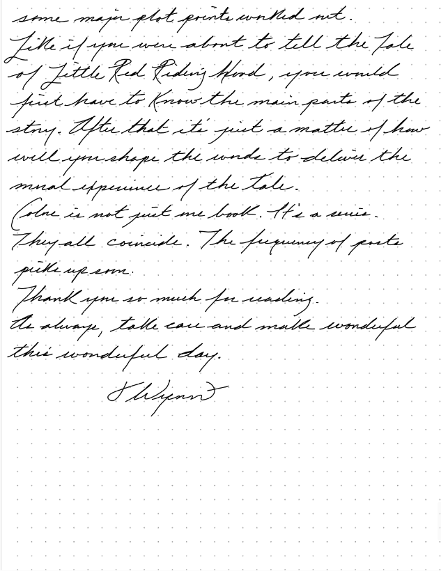 Now, you don't have to know every detail before you start, but you ought to have some major plot points worked out.
