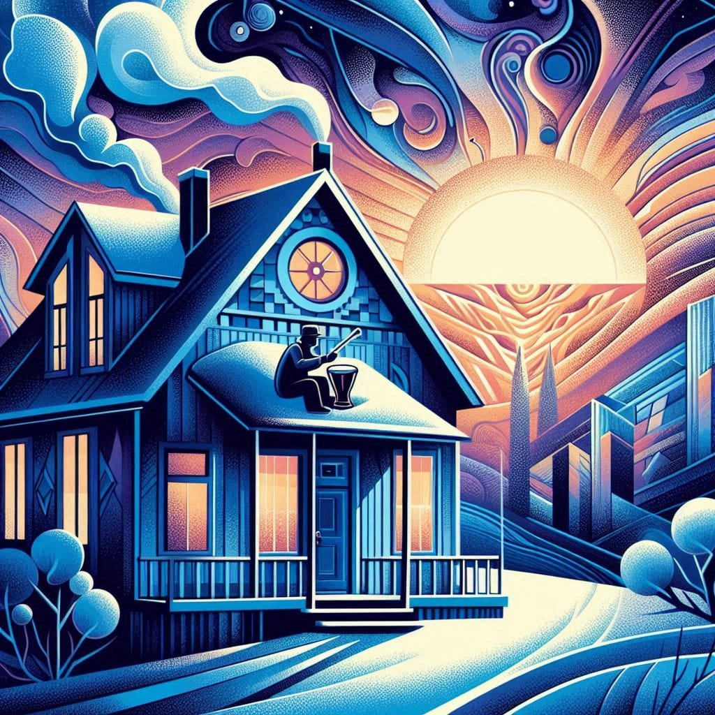 Maybe the neighbor’s roof, their chimney topped with a hi-hat to keep it exit only.