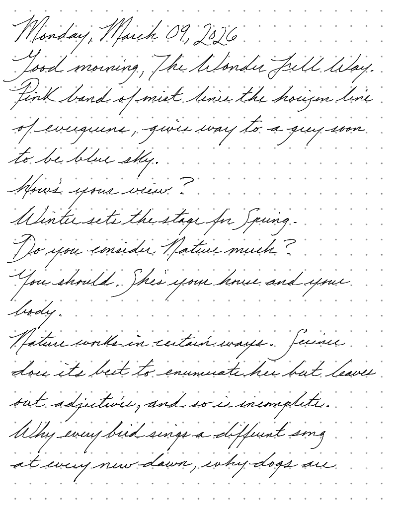 Good morning, The Wonder Fell Way.