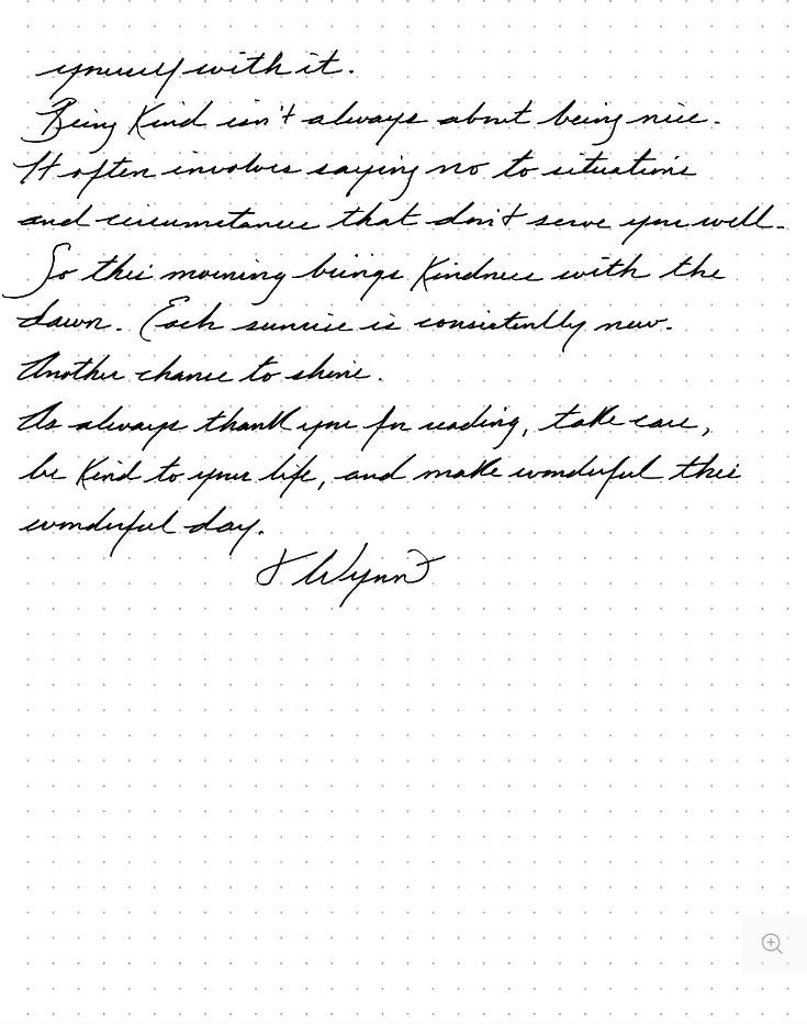 So this morning brings kindness with the dawn. Each sunrise is consistently new... another chance to shine.