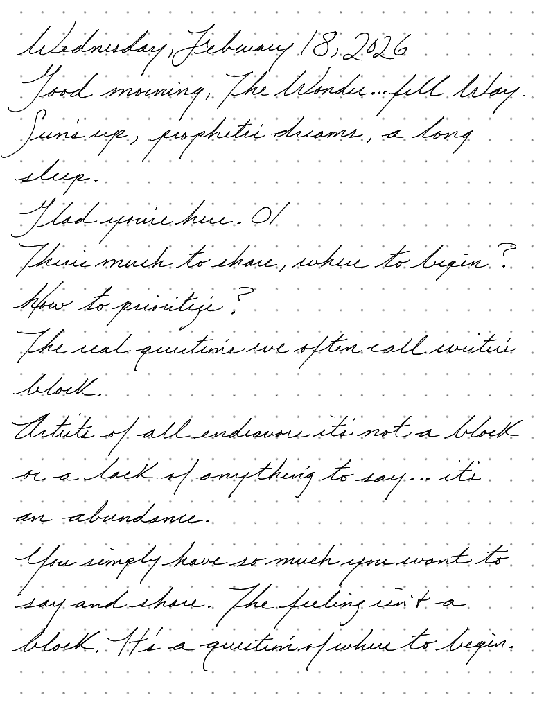 2026.02.18 Artists of all endeavors, it's not a block or a lack of anything to say... it's an abundance.