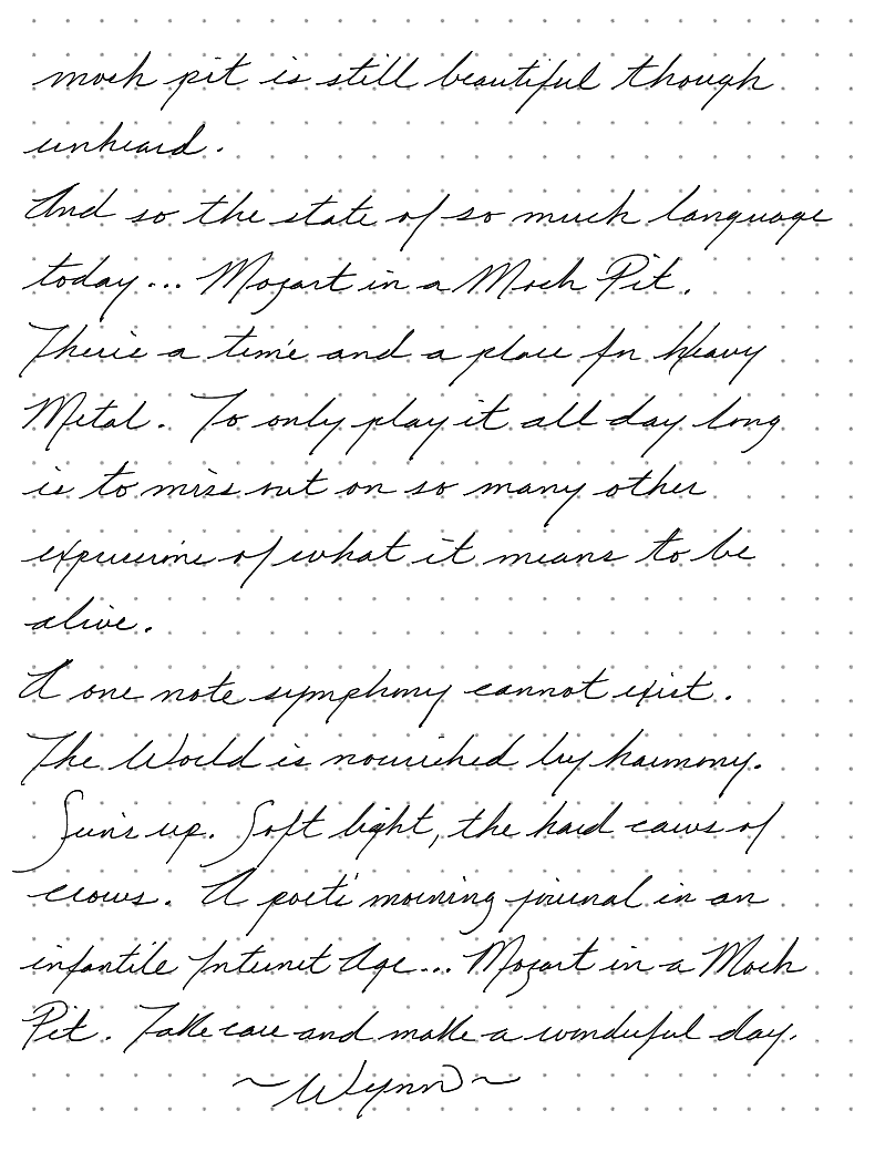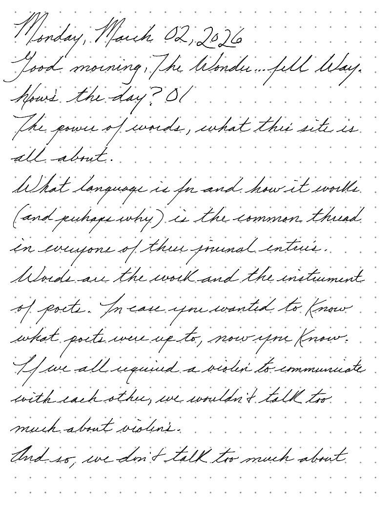 A poet's morning journal in an infantile Internet Age: Mozart in a Mosh Pit.