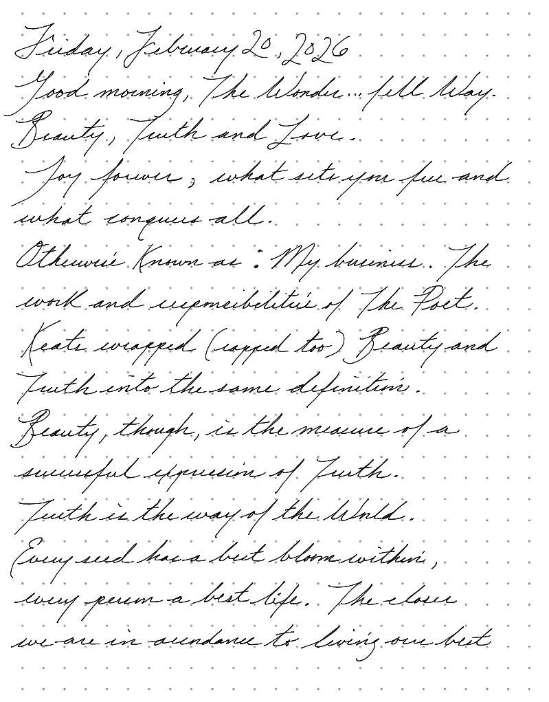 2026.02.20 Joy forever, what sets you free, and what conquers all. Otherwise known as: My business.