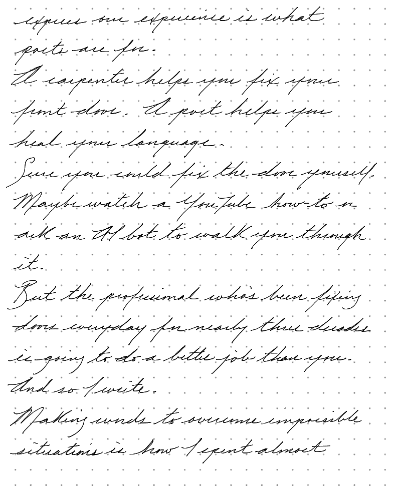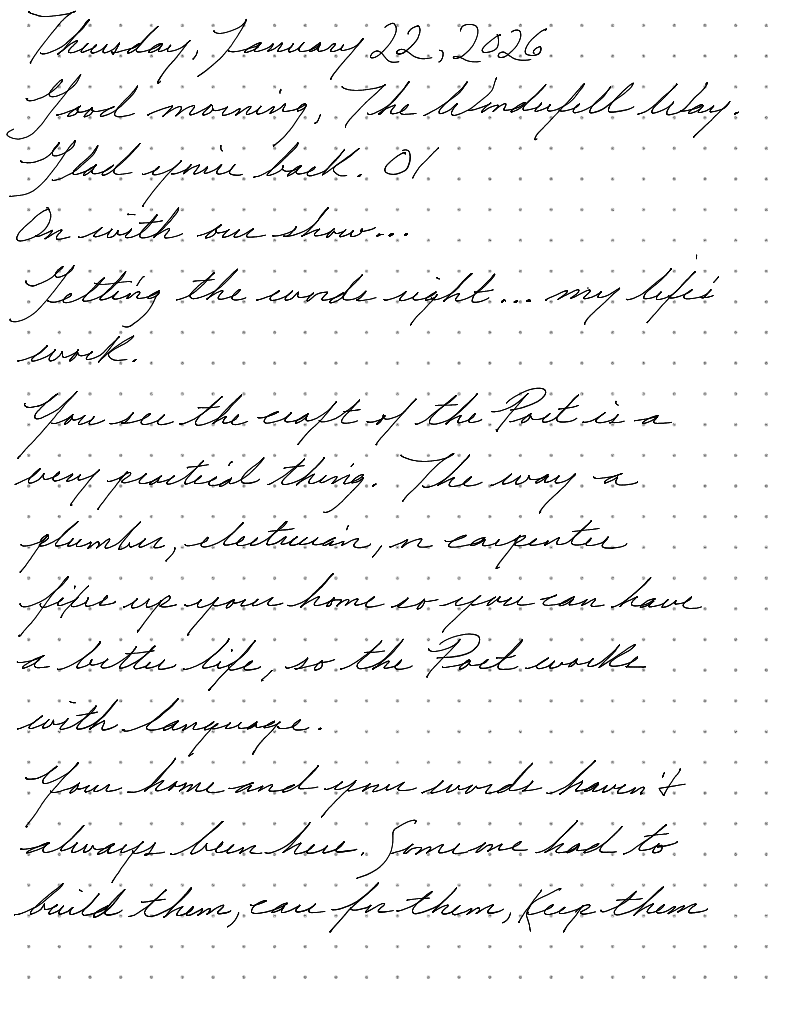 2026.01.22 The way a plumber, electrician, or carpenter fixes up your home so you can have a better life, so the poet works with language.