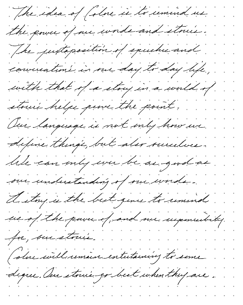 Colore will remain entertaining to some degree. Our stories go best when they are.
