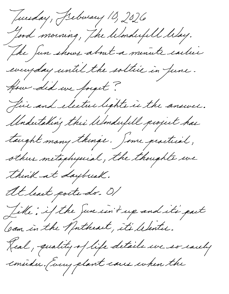 Undertaking this Wonderfell project has taught many things, some practical, others metaphysical, the thoughts we think at daybreak.
