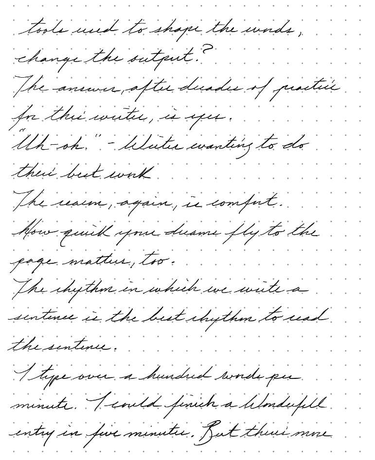 Comfort is the most important consideration. But does the means of expression, the tools used to shape the words, change the output?