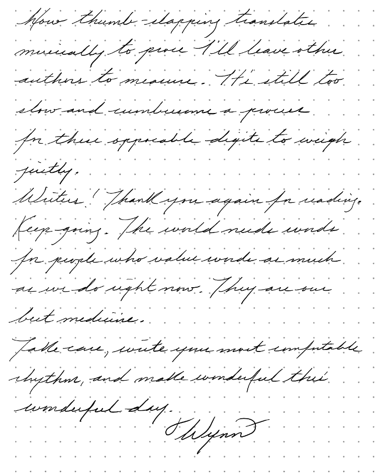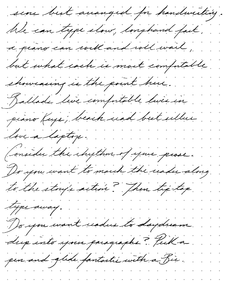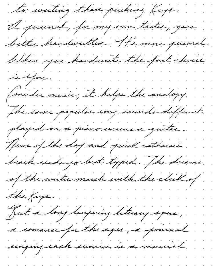But a long lingering literary opus, a romance for the ages, a journal singing each sunrise, is a musical score best arranged for handwriting.