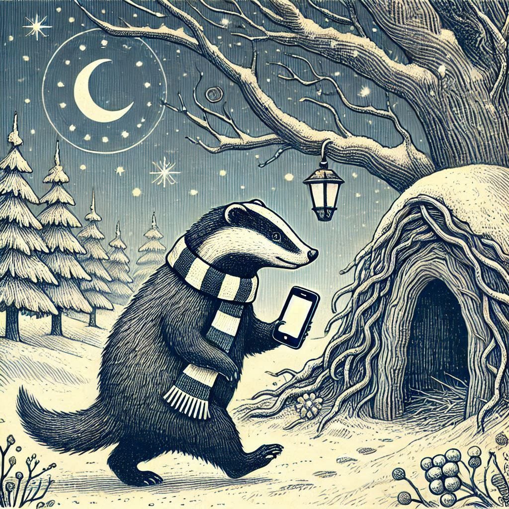 Chase a cellphone talking while walking badger to his den.