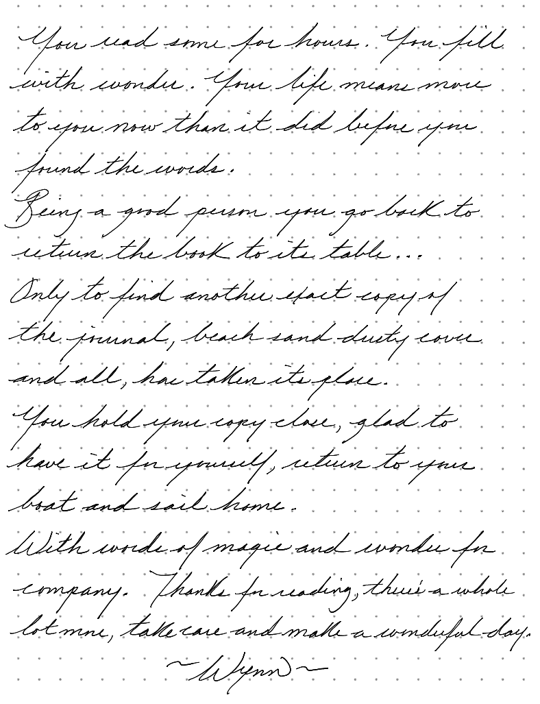 Being a good person you go back to return the book to the table, only to find another exact copy of the journal, beach sand dusty cover and all, has taken its place.