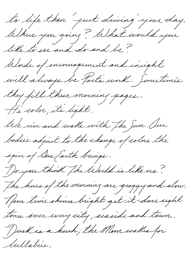 Words of encouragement and insight will always be Poet's work. Sometimes they fill these morning pages.