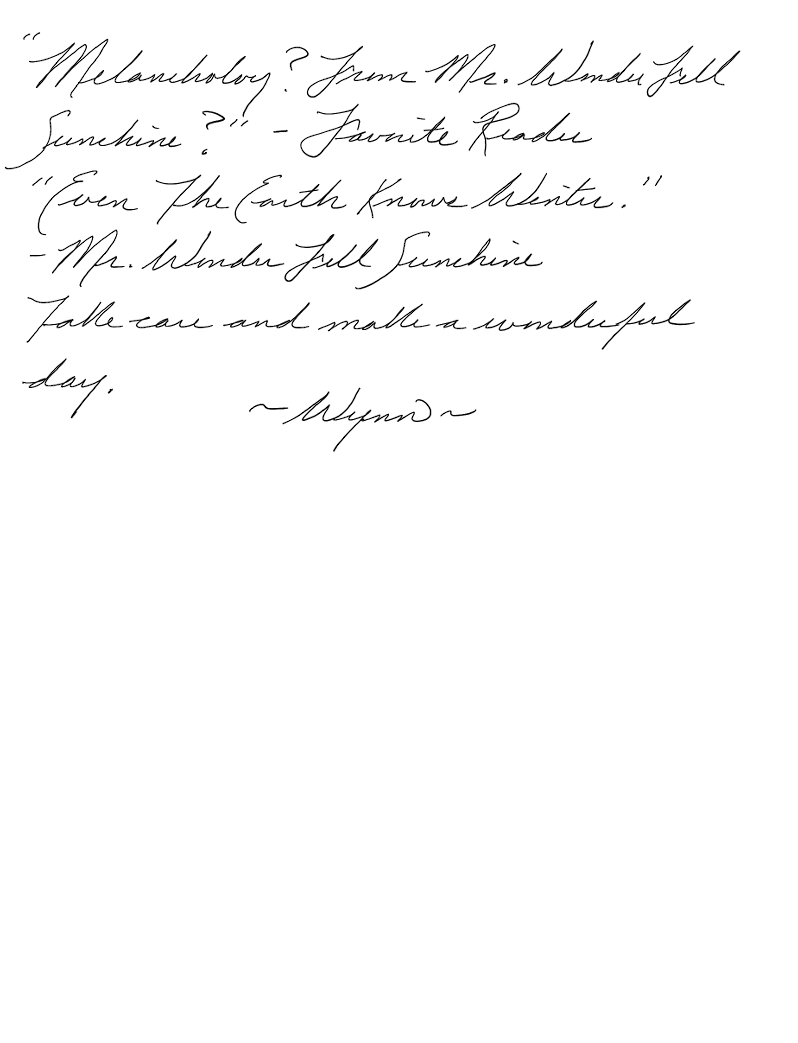 "Melancholy? From Mr. Wonder Fell Sunshine?"