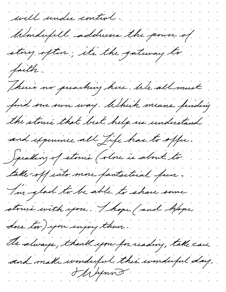 Wonderfell addresses the power of story often; it's the gateway to faith.