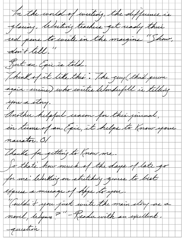 Another helpful reason for this journal, in terms of an Epic, it helps to know your narrator. O/