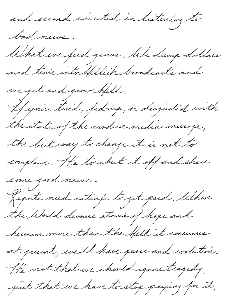 If you're tired, fed-up, disgusted with the state of the modern media message, the best way to change it is not to complain. It is to shut it off and share some good news.