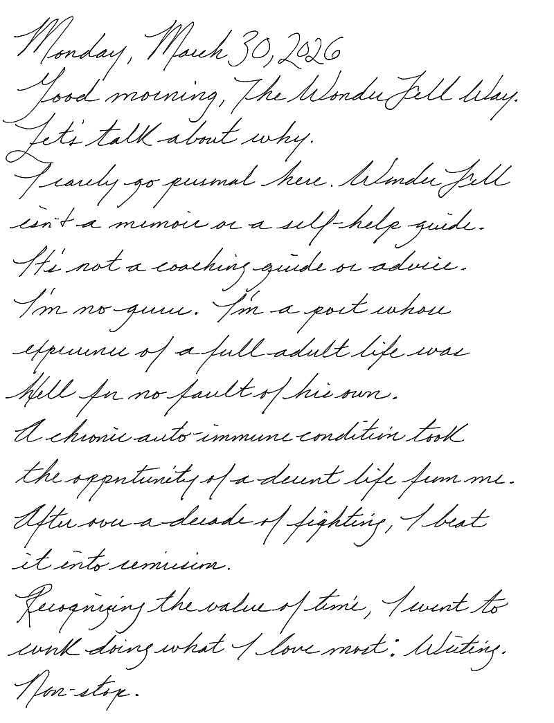 I rarely go personal here. Wonder Fell isn't a memoir or a self-help guide. It's not a coaching manual or advice. I'm no guru. I'm a poet whose experience of adult life was Hell for no fault of his own.