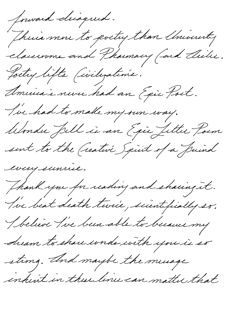 Wonder Fell is an Epic Letter Poem sent to the Creative Spirit of a Friend every sunrise.