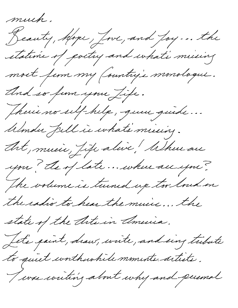 Beauty, Hope, Love, and Joy... the stations of Poetry are what's missing most from my Country's monologue.