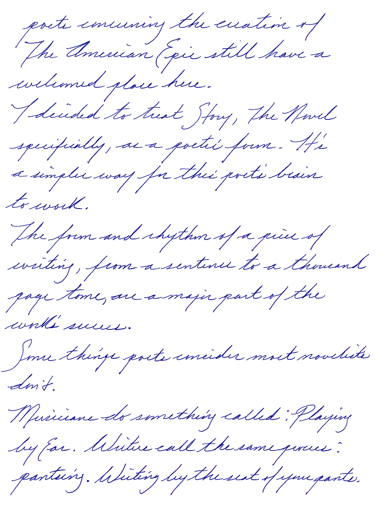 I decided to treat Story, The Novel specifically, as a poetic form. It's a simpler way for this poet's brain to work.